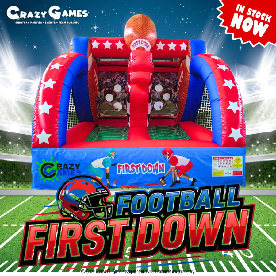 What’s Included: • Football First Down inflatable game • Footballs for gameplay • Professional setup and takedown • Safety anchoring equipment